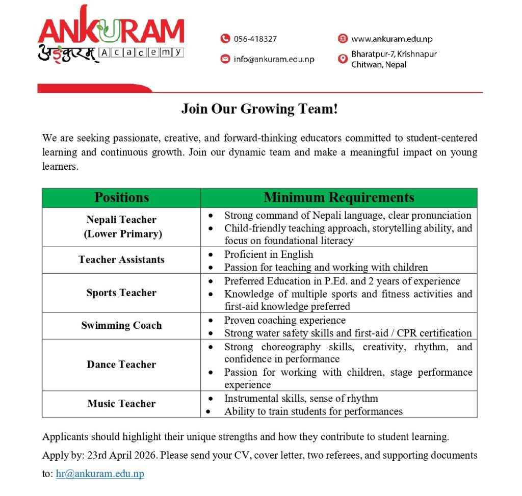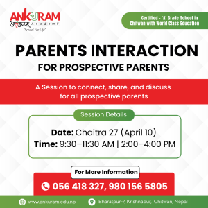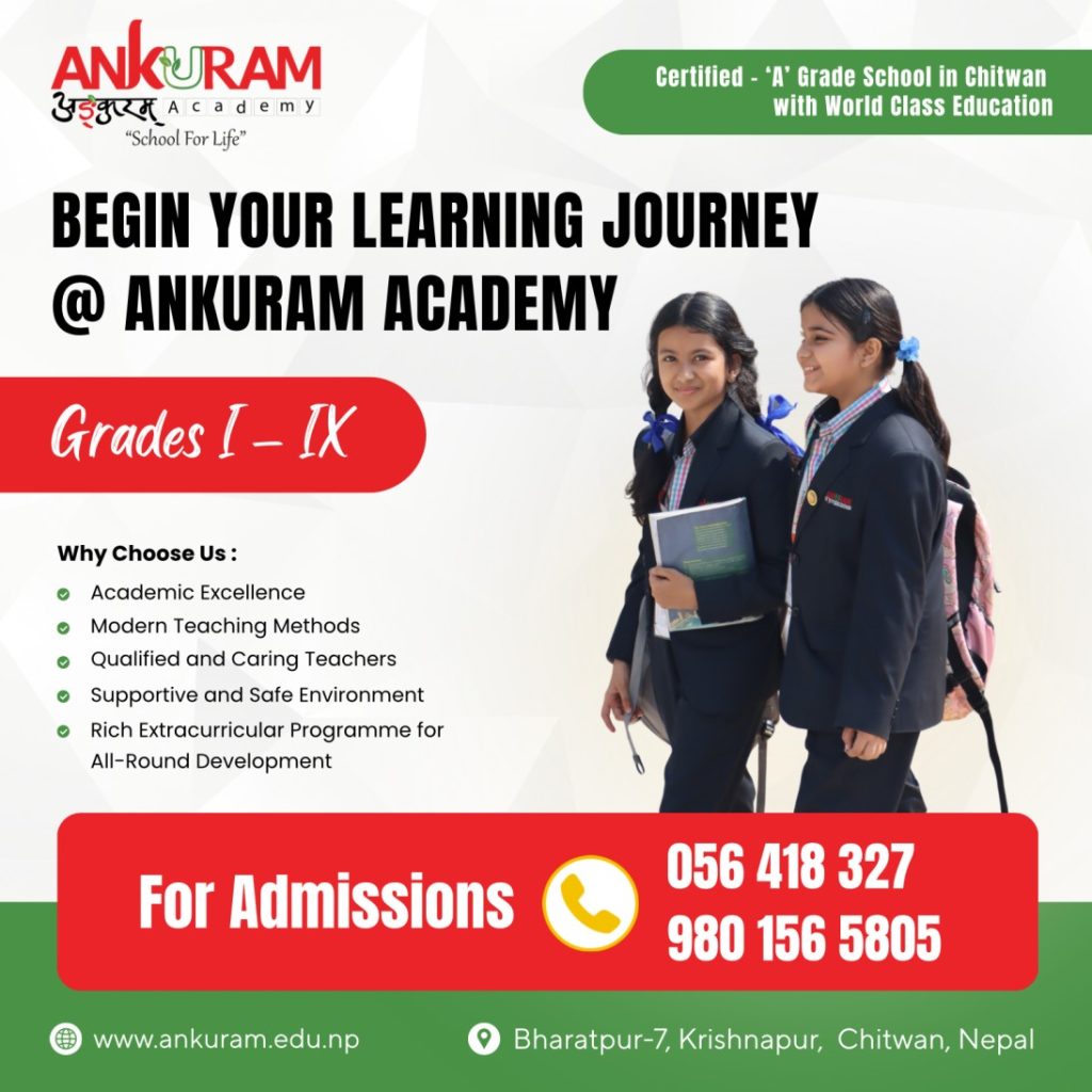 Ankuram Academy is a place where students learn to achieve all their educational goals and aspirations away from family. Having unique features and services offered, we stand to be genuine among all the boarding Schools in the context of Chitwan. As we offer the world class education in Chitwan, the best advice we can hand over you is trusting your instincts and follow your intuition. We help students to develop 21 st Century skills- positive attitude, critical thinking and communication that are essential to succeed in life. Besides, we provide our students holistic education in a caring, life and supportive environment that tastes positive attitudes to learning. Most importantly, we focus on holistic education approach, ensure equality among students, offer well balanced co-curricular activities and help in all round personality development.